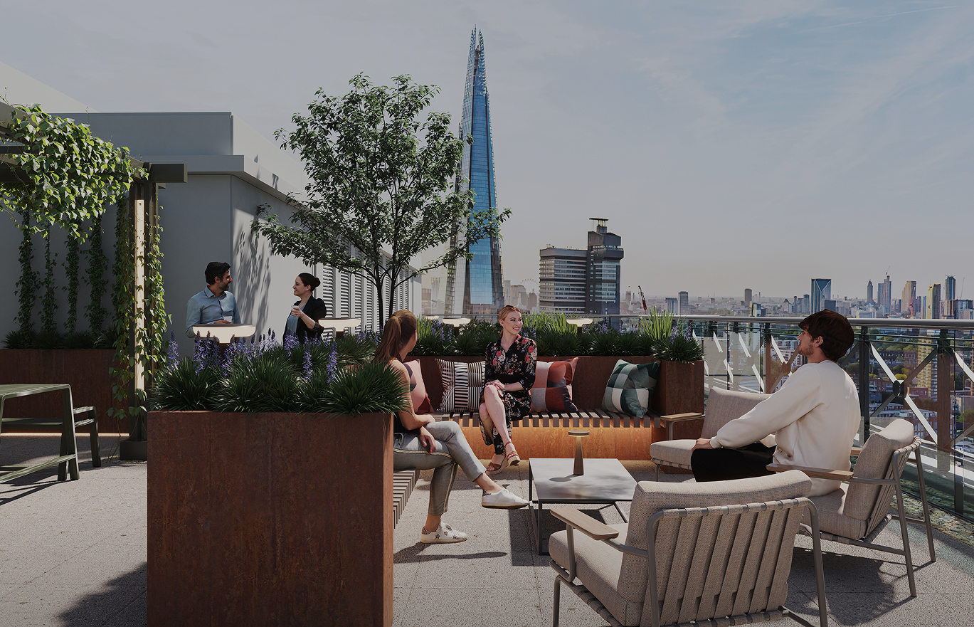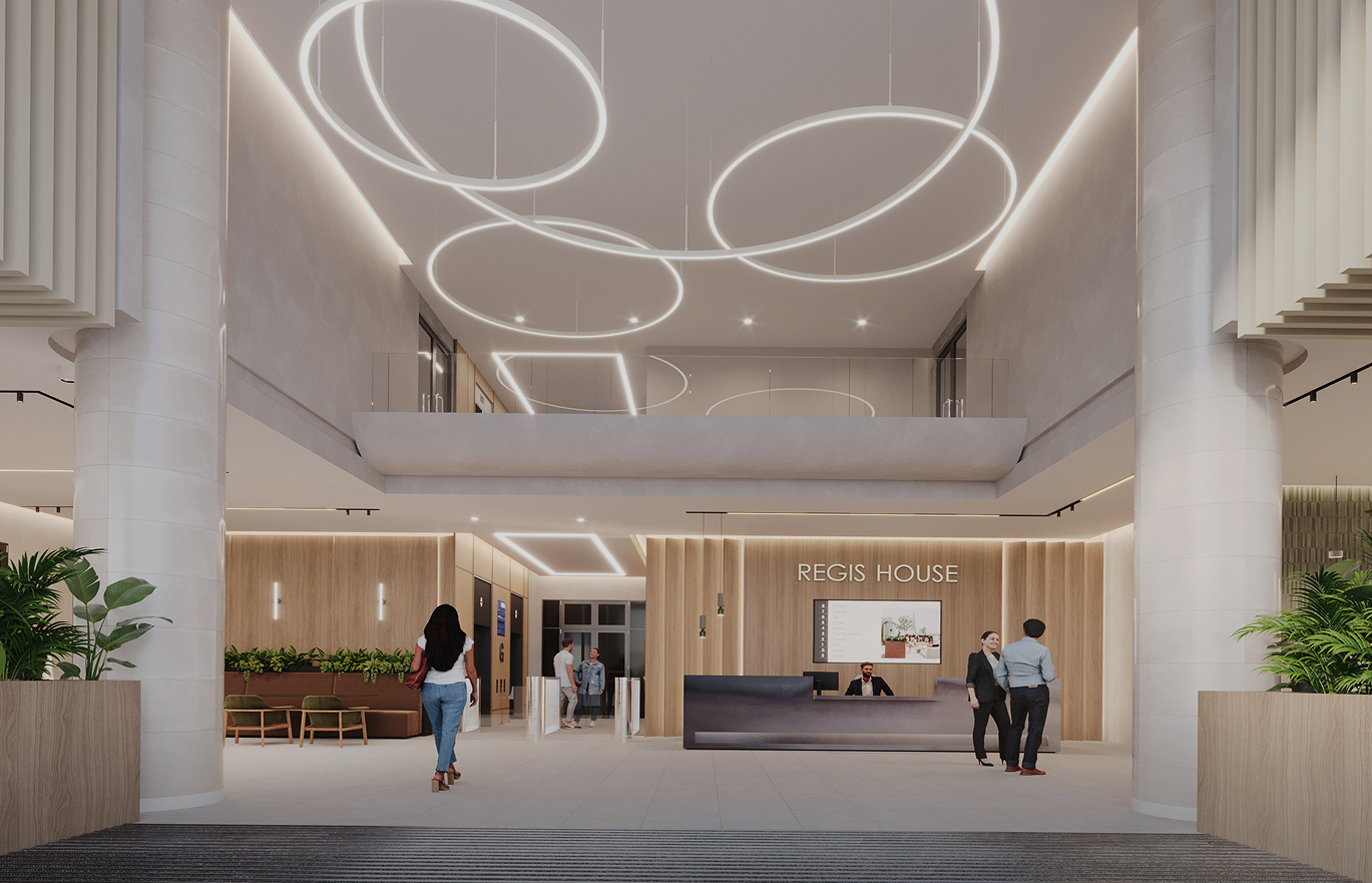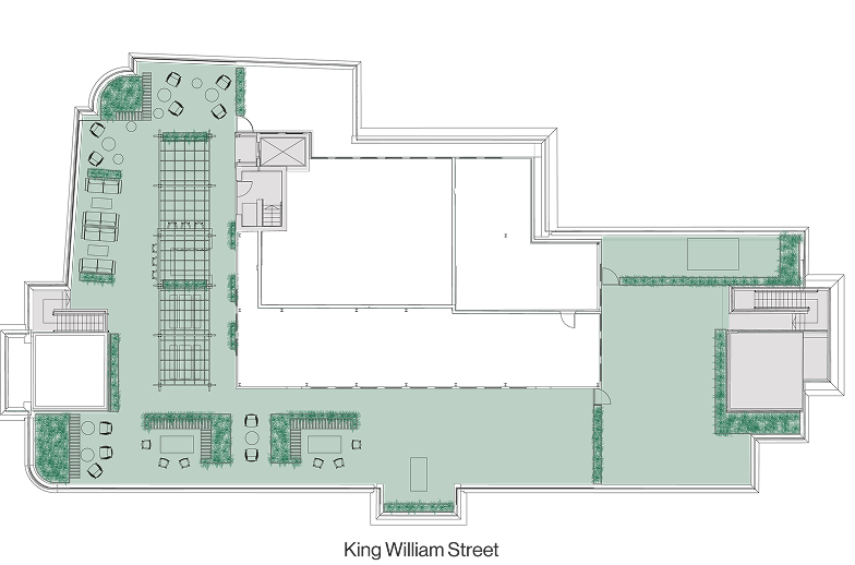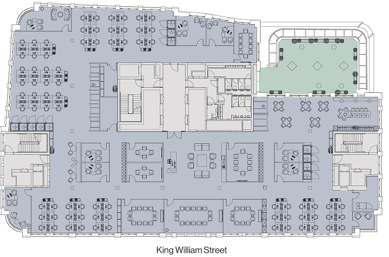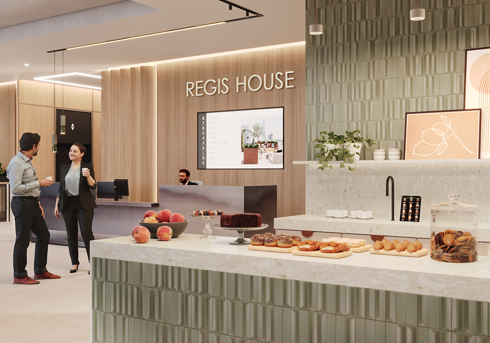 Regis House sits on an island site and features a double height entrance and reception with a new business lounge, plus private and communal terraces with stunning City and South Bank views.